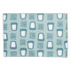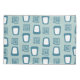 This pillowcase has a mid-century modern design of alternate rectangular mazes and rounded trapezoids in shades of teal.