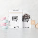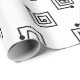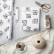 This wrapping paper has a mid-century modern design of scattered mazes.