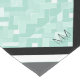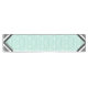 A beautifully made table runner in the colour mint madness, accented with dark grey, white, and black. It has the M by Miyoshi logo on it.