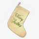 This Digitalised, graphic photo, of Cursive font, "Merry Christmas", is highlighted in, green, and gold-displayed on a glittering, yellow-gold, and bronze, background.
