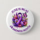 Cute purple awareness ribbon, butterfly and flowers MCAS Mast Cell Activation Syndrome button . Purple polka dot ribbon. June is MCAS awareness month.