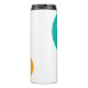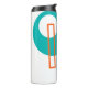 This thermal bottle has a mid-century modern design with a turquoise circle with a hole in it, four rectangles, orange, teal, beet, and green, and a gold pointy circle. If you like the design but prefer different colours, message me.