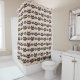 This shower curtain has a mid-century modern design of large and small cat’s heads repeating across the design with faded orange and gold chains in the background. If you like the design but prefer different colours, message me.