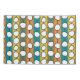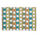 This pillowcase has a mid-century modern design of white “deformed” circles connected with black lines on a field of green, orange, turquoise, and gold strips. If you like the design but prefer different colours, message me.