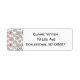 These return address labels have a mid-century modern design of flowers made of circles in shades of pink, cranberry and beige and black lines.