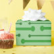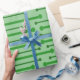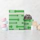 This wrapping paper has a mid-century modern inspired design of lines with circles on the ends in shades of green for St Patrick’s Day.