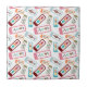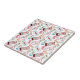 This ceramic tile has a mid-century modern design of lines with shapes in retro colours on them inside rounded rectangles. If you like the design but prefer different colours, message me.