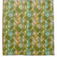 This shower curtain has a mid-century modern design of rounded green rectangles with holes on a background of stripes in mid-century modern colours. If you like the design but prefer different colours, message me.