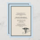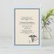 Share your pride in achieving your medical degree with this attractive invitation/announcement. The subtle blue border frames the fawn-coloured centre and features a Caduceus symbol and a stethoscope.