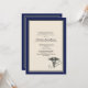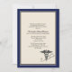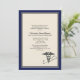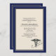Share your pride in achieving your medical degree with this attractive invitation/announcement. The bold navy-blue border frames the fawn-coloured centre and features a Caduceus symbol and a stethoscope.