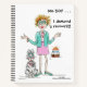 How can it be?! 50 already? Our red haired Lady is having trouble coming to terms with the reality of her years. Even her Poodle seems shocked by the news. Her green jacked and shoes, pink skirt and jewellery tell us she is on her way to a birthday party where a cake supporting a bonfire of candles awaits her. Perhaps you have a friend who will get a laugh when they see this design on your notebook. Might you take the notebook to a retirement planning session?