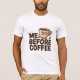 Clean vector illustration featuring a sleepy coffee cup character with droopy eyes, limp stick arms hanging at sides, and a subtle frown capturing morning grogginess. Bold "Me Before Coffee" text in sans-serif typography sits center stage, using warm browns, creamy tones, and coral accents for trendy Gen Z appeal. Minimal centered composition on transparent background—perfect for versatile print applications with relatable caffeine humor