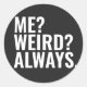 Me? Weird? Always. Introvert funny sayings Classic Round Sticker