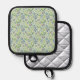 Add a little cheer to cooking with a whimsical, hand-painted watercolor floral patterned pot holder, featuring playful blue, orange and yellow daisy blooms dancing on a mint green background.