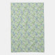 Add a little cheer to your day with a whimsical, hand-painted watercolor floral patterned towel, featuring playful blue, orange and yellow daisy blooms dancing on a mint green background.