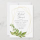 An elegant, modern botanical bridal shower invitation with a beautiful gold geometric centerpiece surrounded by lush watercolor leaves. Background colour as shown is white, but you can select a custom colour to match your wedding theme.