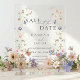 Make a stunning first impression with this acrylic floral Save the Date card, designed to feel modern, romantic, and unforgettable. Printed on clear acrylic for a sleek, contemporary look, this design features a delicate border of soft pastel blooms in blush, peach, lavender, and buttery yellow tones. The airy floral frame surrounds elegant serif and script typography for a timeless yet trendy presentation.