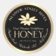 A pale yellow wildflower (native sunflower) on a black background with pale gold text and gold gradient border. "Honey" is written with an 'embossed'  font in a light-coloured metallic gold gradient. Add your apiary name, honey net weight, location and contact info. And --Happy Beekeeping!