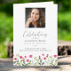 A beautiful memorial program featuring a border of pretty watercolor wild flowers and photos of your loved one. Add custom text to all four sides - an obituary, order of the service, poem, thank you message, etc. This program is so easy to personalise - just click “personalise this template” to change the text and photos or click edit to customise even further. This is truly a one-of-a-kind program that people will cherish forever.