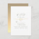 Simple, minimal, modern, elegant sage green and gold wedding RSVP card with meal choice, rope heart and trendy handwritten script.