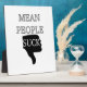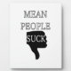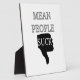 Black and white typography. A human hand with the thumb down. Text: Mean People Suck.