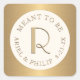 This beautiful monogrammed label uses a French font for the happy couple's surname. Text can be edited as needed.