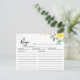 This post card size meant to bee themed floral bridal shower recipe card features a yellow floral arrangement with foliage and heart shaped flight path and bee.
