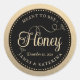 Black and gold label that almost looks like kraft with two flying bees and the word "Honey" in cursive font. Write in your bride and groom's names and wedding date - the top of the label reads "meant to bee!"