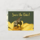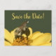 Let everyone know about your upcoming wedding with the bee-you-ti-ful Save the Date postcards. They feature a close-up photo of a bee on a yellow flower against a dark green background on the front. Save the Date! or your own choice of message is spelled out in yellow script lettering on the front. Easily fill in the template fields to include your own text on the back of this postcard against a faded illustration of a been on a flower.