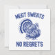 Funny "Meat Sweats No Regrets" is an all blue Thanksgiving design with simple sans serif grunge font and a vintage illustration of a live turkey. This simple yet eye-catching Thanksgiving Day design makes a great gift for the turkey lover in your life.