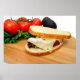 Sourdough bread and meatloaf with melted swiss cheese and lettuce, tomato and avocado in the background.