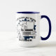 A fun design featuring a handyman mechanic under the hood of a car doing some auto repairs, in tones of blue, black and white, ideal gift for garage owners, handymen, mechanics or for anyone who loves tinkering around with vehicles as a hobby. Don't forget to customise it with a personal name for that extra special touch.