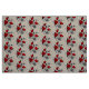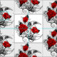 Contour, mechanical crescent moon with gears, decorated with red roses with black spiked stems and leaves on white background. Steampunk