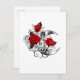 Contour, mechanical crescent moon with gears, decorated with red roses with black spiked stems and leaves on white background. Steampunk