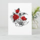 Contour, mechanical crescent moon with gears, decorated with red roses with black spiked stems and leaves on white background. Steampunk