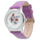 The watch looks exactly as depicted.  I was especially pleased with the watch band, which is a nice quality, supple leather.  I point this out because an option, which was sold out, was with a multi-colored but clearly plastic band.  This is the better choice, in my view.