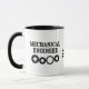 Mechanical Engineer in grey text and a row of gears is a unique gift design for mechanical, robotic, thermodynamics, nanotechnology and manufacturing engineers and engineering students.