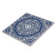 Ceramic tile in a medallion pattern adapted from antique Persian tile work - white tracery on cobalt blue
