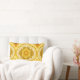 Lumbar pillow in a twelve point, batik effect, medallion pattern, in shades of dark to light mustard gold and warm golden yellow