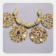 Russian School's Medallions from 'Barmy Collar', with filigree and granulation decoration, Rayazan, 12th century (gold set with jewels and pearls) located at the Kremlin Museums, Moscow, Russia. The Medallions from 'Barmy Collar', with filigree and granulation decoration, Rayazan, 12th century (gold set with jewels and pearls) was created around the 12th century.