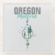 Modern word art features Oregon in distressed grey font with Medford in a modern aqua script font with geometric trees logo style graphic on light grey background