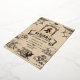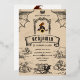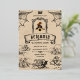 This mediaeval-themed invitation features a parchment-like background adorned with antique illustrations of dragons, knights, and mythical creatures. A central ornate archway frames a small, stylised dragon perched above a black sun or void. The text is elegantly styled in a serif font reminiscent of calligraphy, with a banner proclaiming the birthday celebrant's age. The overall aesthetic is whimsical and adventurous, perfect for a fantasy-themed celebration. The colour palette is muted, using sepia tones and browns to enhance the antique feel. The invitation details a party on August 14, 2025, at 4 PM. RSVP information is also included.