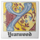 Mediaeval Blue and Red Ivy Illuminated Letter Y Ceramic Tile