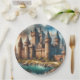 Mediaeval Castle by a Tranquil River at Sunset Paper Plate