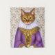 Tapestry in a portrait of a ginger cat, dressed as an aristocratic, mediaeval cat maiden, in a purple, elaborately trimmed dress, and a veil