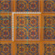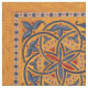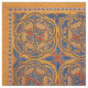 Abstract geometric design featuring detail from mediaeval Armenian illuminated manuscript in gold, red and blue