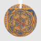 Abstract geometric design featuring detail from mediaeval Armenian illuminated manuscript in gold, red and blue