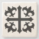 A stone coaster with a black mediaeval cross and Fleur de lis symbols on it. I ordered mine on the travertine because I loved how rustic that stone looks. It turned out dark black and the edges are super sharp. If you have seen the review below that I did on this, you can see the colour. It was a bad camera though, cause the picture turned out blurry. The finished product turned out gorgeous.