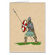 Clad in byrnie (short mail shirt) and spangenhelm (helmet made up of plates riveted to a framework of strips), an early mediaeval English/Saxon warrior carries a round shield and wields a winged spear in this original illustration by Richard H. Fay.