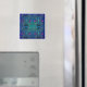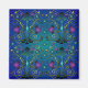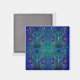 Lovely mediaeval floral pattern square magnet, purple, green, blue on midnight blue background.